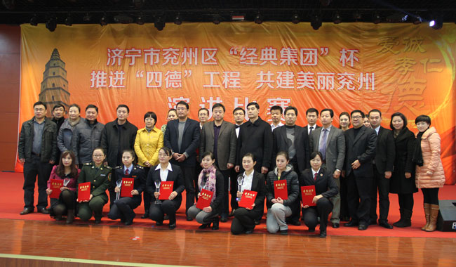 12月18日,濟寧市兗州區(qū)“經(jīng)典集團杯”推進“四德”工程共建美好兗州演講比賽決賽在經(jīng)典集團舉辦。濟寧市委宣傳部副部長、兗州區(qū)委副書記于慶軍,區(qū)委常委、宣傳部長初建偉,經(jīng)典集團董事長苗樹文,總經(jīng)理杜福生等出席了活動。