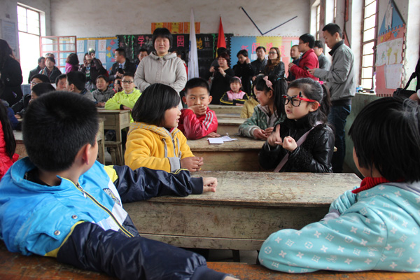 來自濟(jì)寧霍家街等小學(xué)的小志愿者們走進(jìn)泗水縣泗張青界小學(xué)
