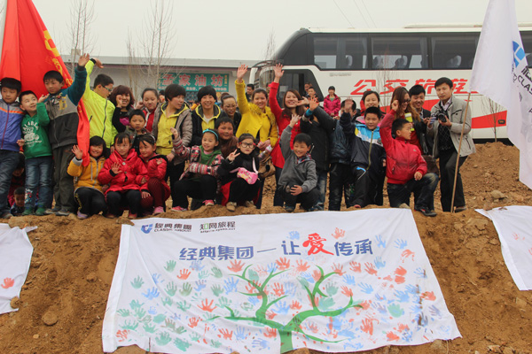 為此2013年3月17日由山東經(jīng)典集團(tuán)和濟(jì)寧廣播電視臺(tái)及各網(wǎng)絡(luò)媒體聯(lián)合發(fā)起的濟(jì)寧地區(qū)關(guān)注留守兒童大型公益活動(dòng),第一站活動(dòng)走進(jìn)泗水縣泗張鎮(zhèn)青界小學(xué),來自濟(jì)寧市各行各業(yè)的網(wǎng)友和義工,家庭等熱愛旅游的志愿者,與泗水青界小學(xué)的同學(xué)們進(jìn)行一對(duì)一幫扶交流活動(dòng),與他們一起共植愛心樹,一起做游戲,一起比賽,讓他們與城里的孩子互相溝通交流,共同進(jìn)步,通過活動(dòng)激勵(lì)更多的留守兒童自強(qiáng)不息,學(xué)會(huì)自學(xué)、自理、自護(hù)、自強(qiáng)、自律,做生活的強(qiáng)者,使他們能與其他小伙伴一樣,在同一片藍(lán)天下,享受生活的幸福與快樂。
