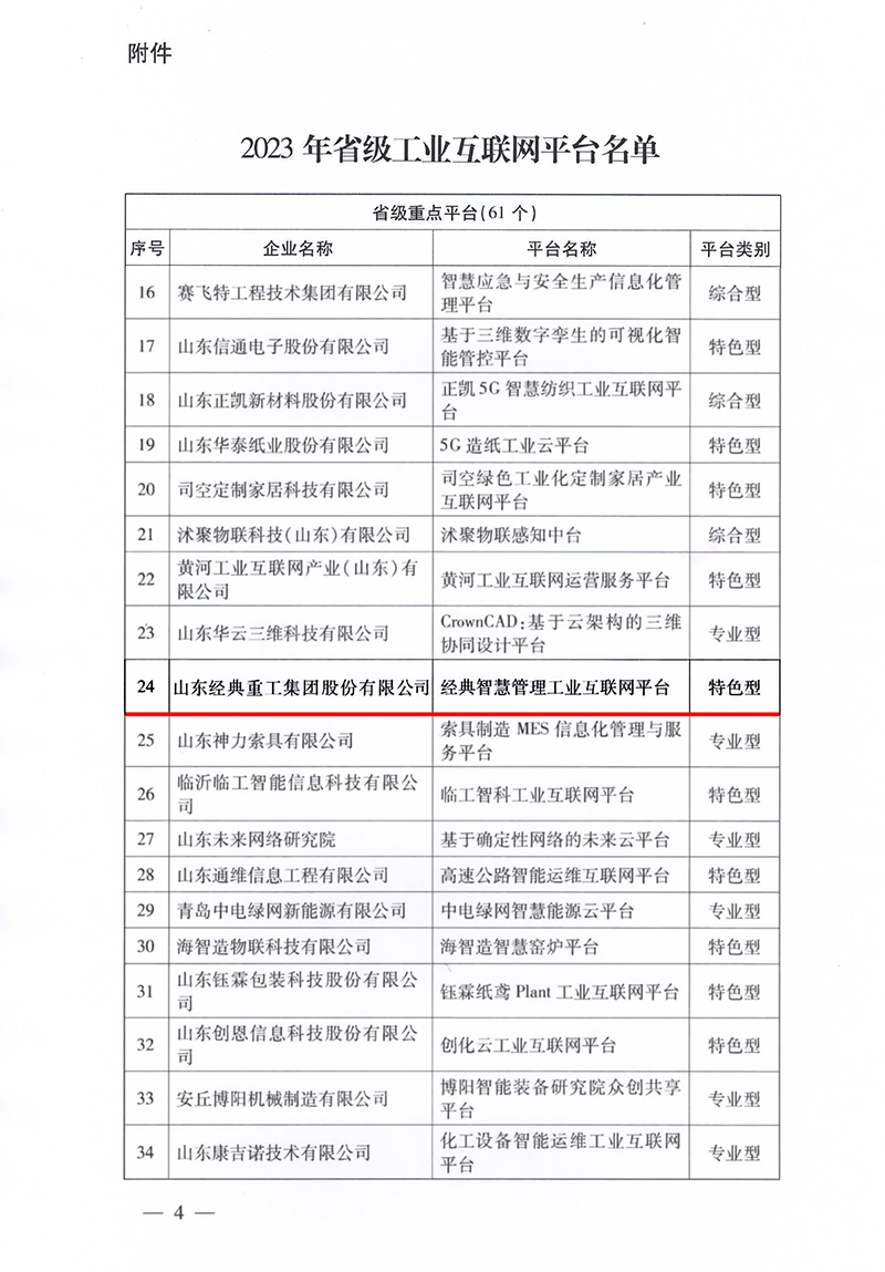近日,山東省工業(yè)和信息化廳發(fā)布了《2023年省級工業(yè)互聯(lián)網平臺名單》,山東經典重工集團股份有限公司“經典智慧管理工業(yè)互聯(lián)網平臺”成功入選山東省級工業(yè)互聯(lián)網重點平臺名單。