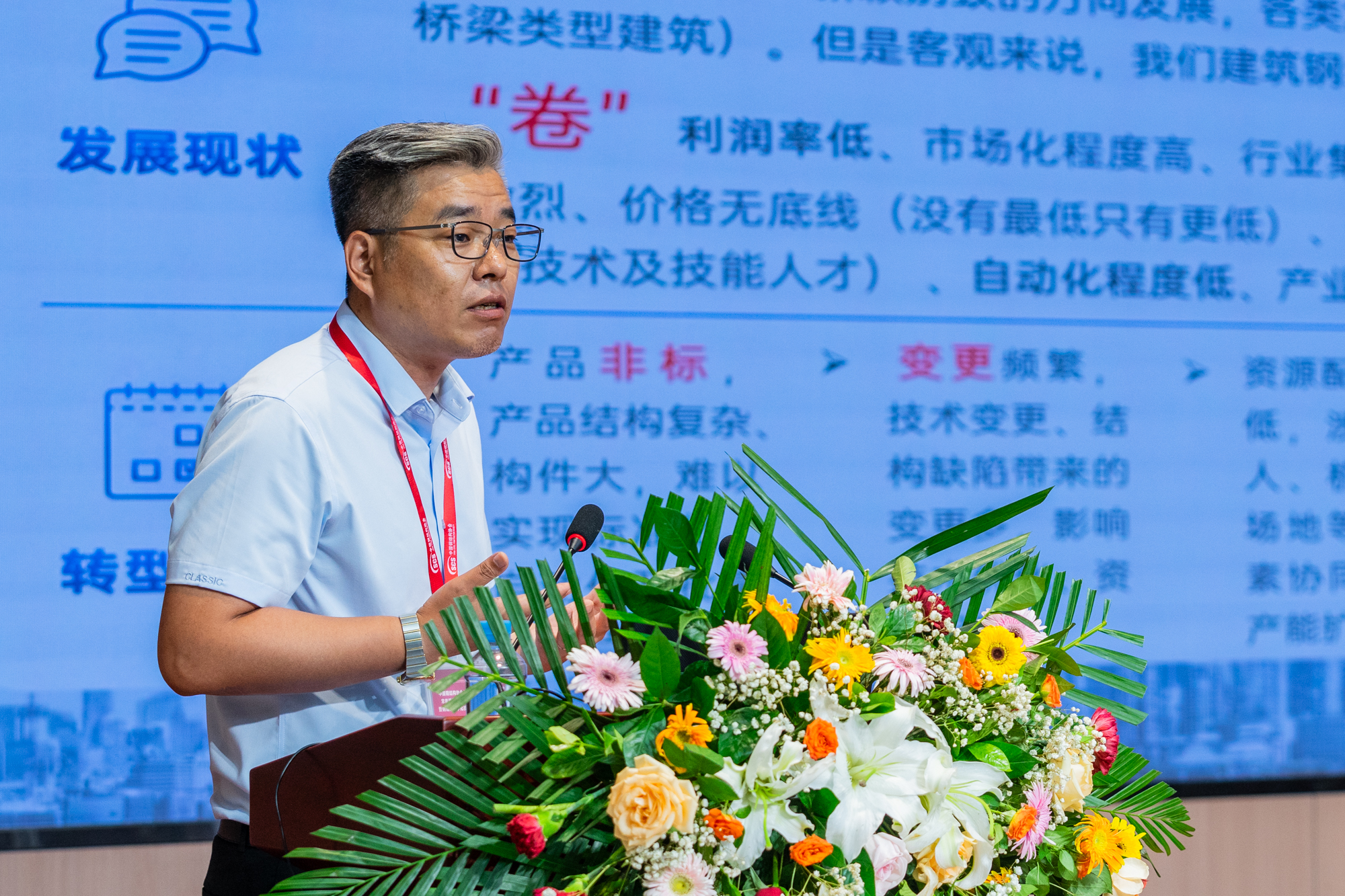 大會報告環節,全國工程勘察設計大師、中南建筑設計院股份有限公司董事長李霆,上海建工(江蘇)鋼結構有限公司總經理章榮輝等10位專家、企業家分別做了精彩的主題演講,報告內容涵蓋新質生產力、智能制造、數字化轉型升級、產業發展展望等內容,會場學術氛圍濃厚,學術交流活躍,深度研判了鋼結構產業科技創新路徑,對目前鋼結構數字前沿技術、新材料新工藝以及未來鋼結構建筑數字應用趨勢、技術研究成果和實踐經驗進行了分享。