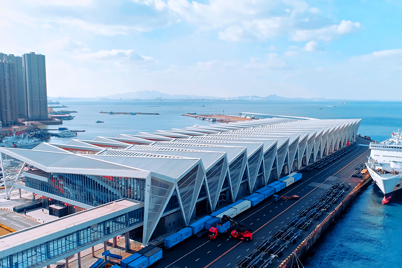 青島郵輪母港設計造型來源于青島——中國帆船之都的“風帆”寓意,本工程為大跨度梁單元空間結構,全鉸連接,造型新穎,含鋼量大,節點加工精度要求極高,我們接到此項任務后組織了多次專家學術研討會,針對異型構件加工制造專項問題攻堅克難,保證了質量與工期,圓滿完成了這項艱巨的任務。
