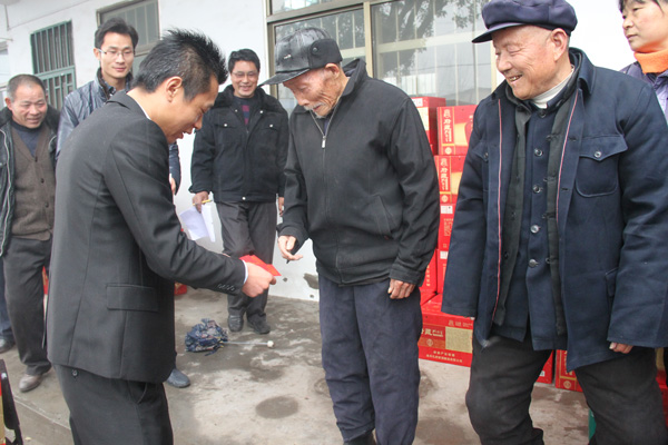 此次活動,柳溝村收到慰問府藏孔府家酒650箱,總價值39萬余元,受到老人們的歡迎。公司負(fù)責(zé)人還親自把600元慰問金分別送到9戶特困老人手中,表達(dá)對他們的慰問之情。老人們對經(jīng)典集團(tuán)的慰問表示真誠感謝,并祝愿經(jīng)典事業(yè)在2015年取得更大成績。