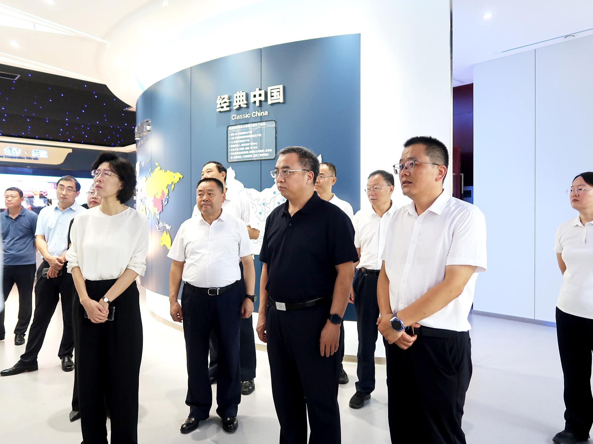 8月7日,山東省住房城鄉建設廳黨組成員、副廳長麻鵬飛一行到經典集團調研。濟寧市副市長宮曉芳,市政府副秘書長田宏欣,濟寧市住建局局長薛聰,兗州區副區長楊陽,經典集團董事長史振華,經典控股總經理高建國,政府有關部門負責人陪同調研。