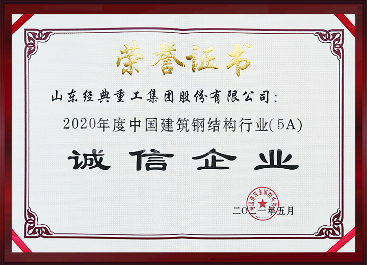 中國建筑金屬結(jié)構(gòu)協(xié)會通報2020年度建筑鋼結(jié)構(gòu)行業(yè)競爭力50強企業(yè),公司位列17位;榮獲2020年度中國建筑鋼結(jié)構(gòu)行業(yè)(5A)誠信企業(yè)。
