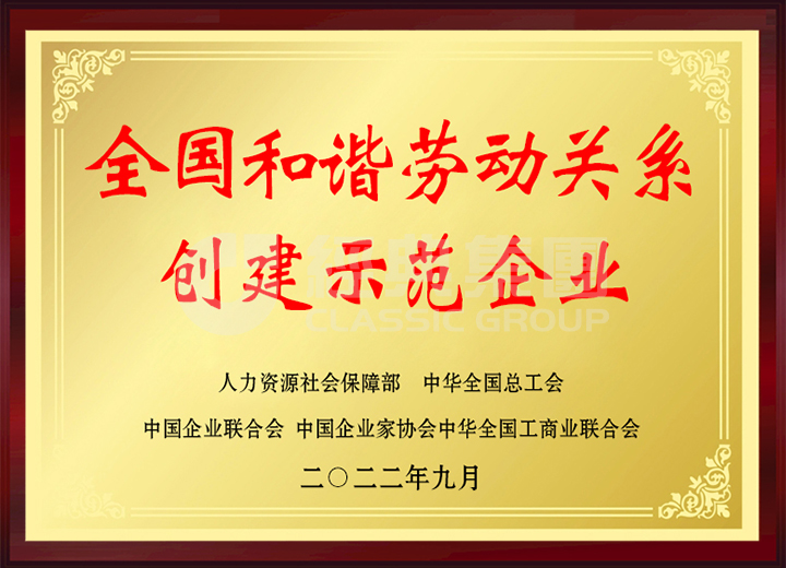 經(jīng)典集團入選全國和諧勞動關(guān)系創(chuàng)建示范企業(yè)。