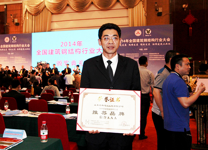 參加中國鋼結(jié)構(gòu)協(xié)會成立三十周年紀念大會當選常務(wù)理事單位,榮獲首批全國鋼結(jié)構(gòu)行業(yè)AAA級信用企業(yè)、中國鋼結(jié)構(gòu)行業(yè)杰出貢獻人物、2014年度鋼結(jié)構(gòu)杰出人才獎。