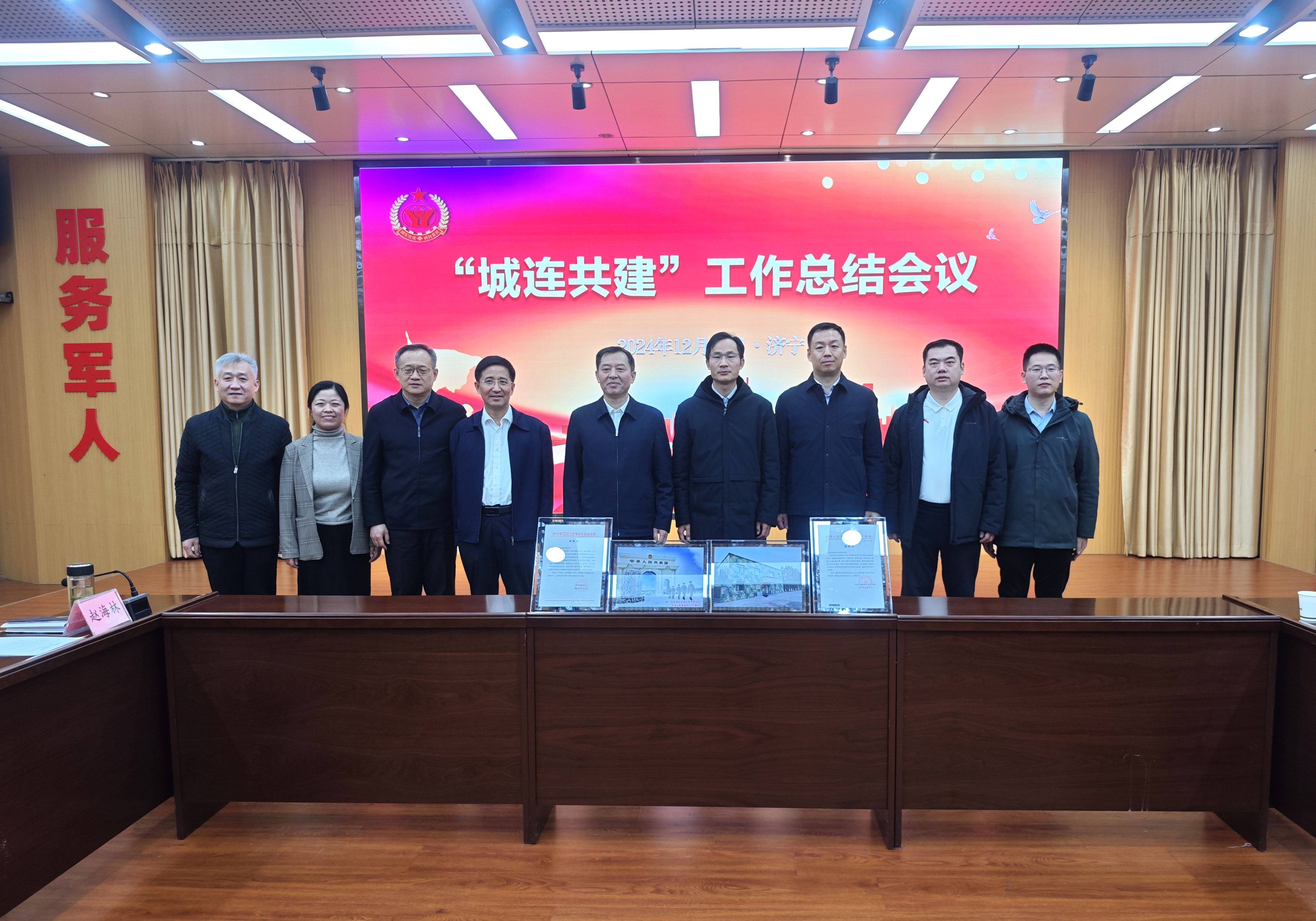 濟寧市“城連共建”工作總結(jié)會議召開,濟寧市人民政府副市長、市公安局局長、一級巡視員李海洋現(xiàn)場頒發(fā)了中國人民解放軍某部寫給山東經(jīng)典建設(shè)工程有限公司的感謝信、濟寧市雙擁辦的表揚信。”